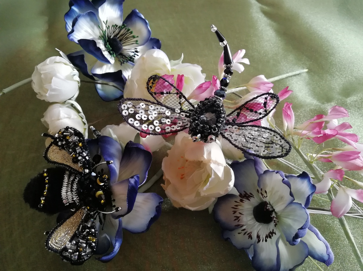 Насекомые... удивительные маленькие броши — завершающая точка любой композиции. Они хороши и как одиночный аксессуар, мило декорирующий любое изделие, так и в тандеме с шелковой флористикой. Шляпка, пальто, жакет, блузка и даже обувь... все может декорироваться этими выдающимися маленькими хулиганами... цветные... черно-белые, в золоте и серебре... какими будут Ваши? Выбирайте и скорее забирайте!!!