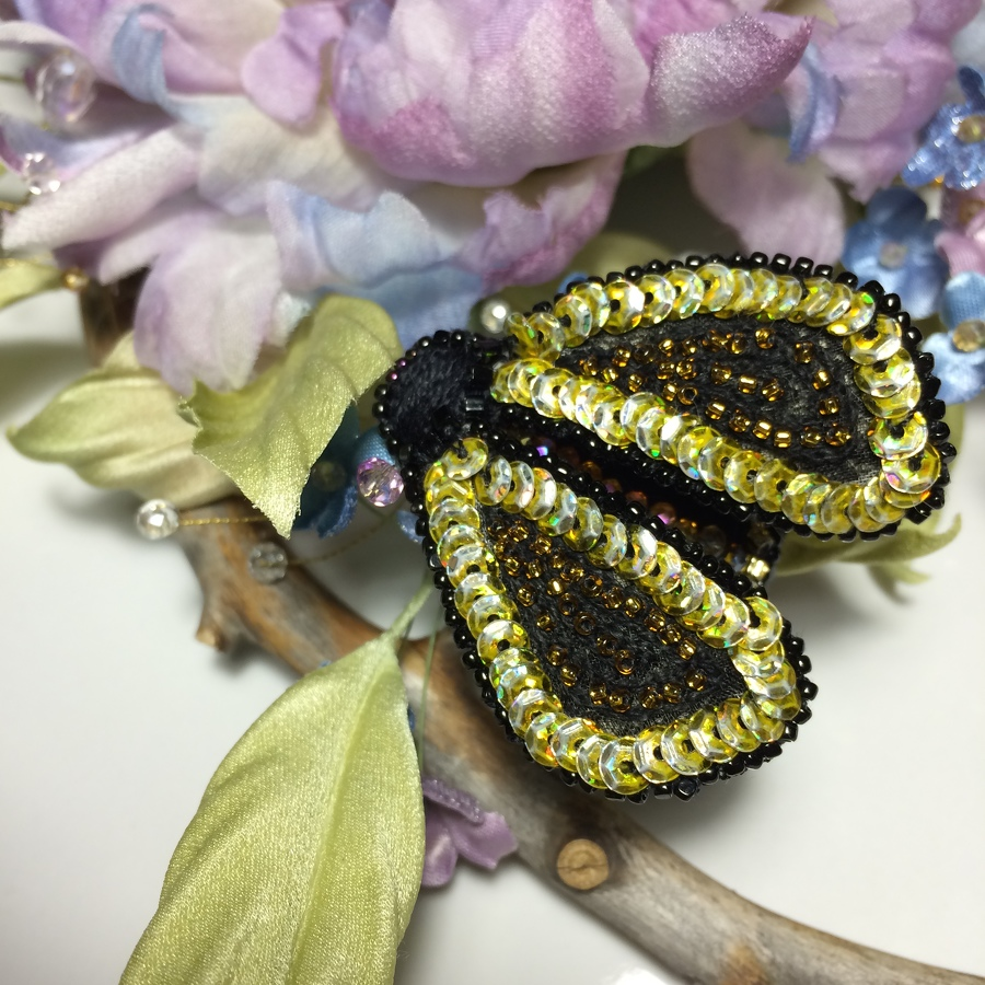 Метод освоенный на примере Шмеля поможет вам расшивать тела бабочек и жуков, изготавливать диковинные фрукты, вышивать невероятной красоты крылья бабочек стрекоз, грудки и крылья птиц.