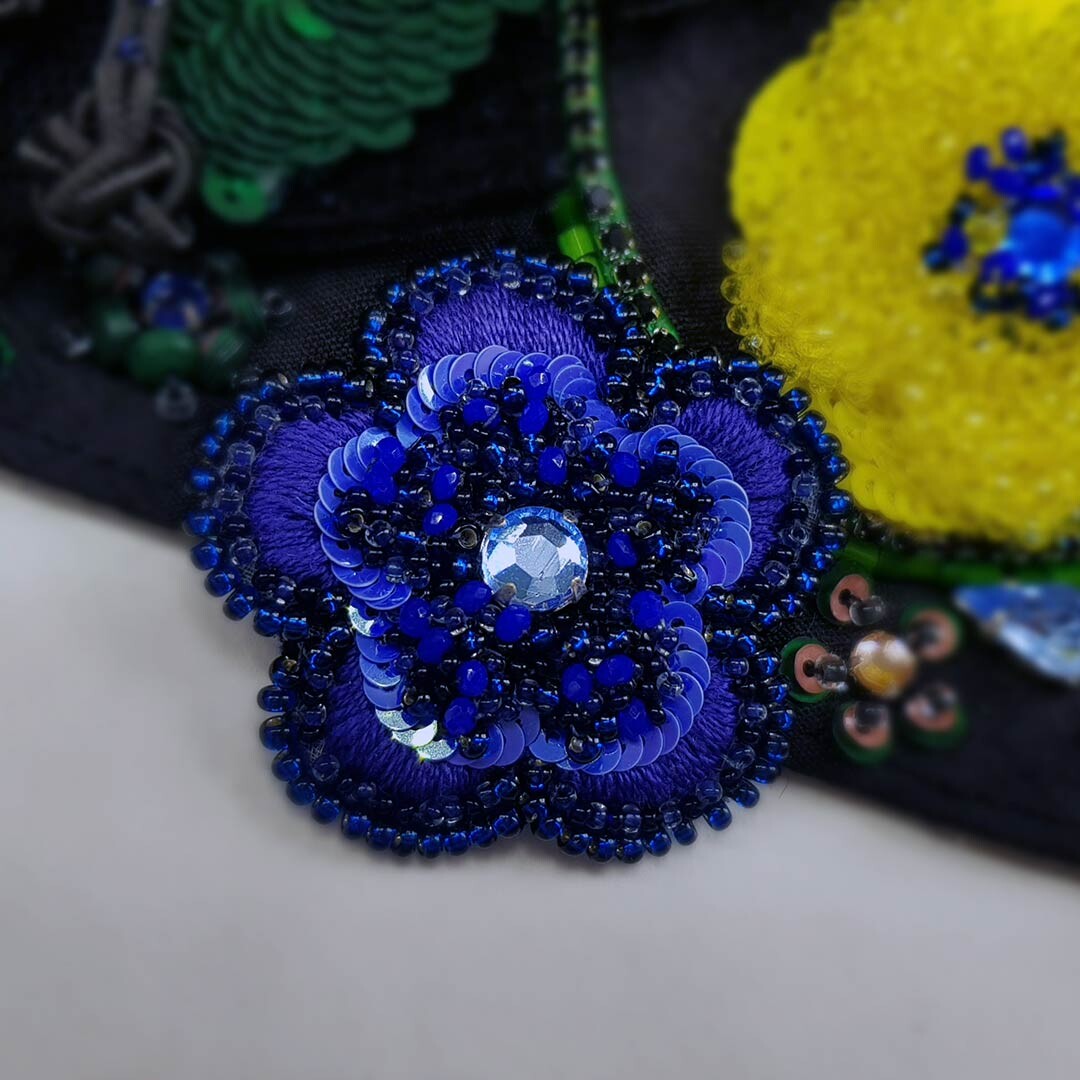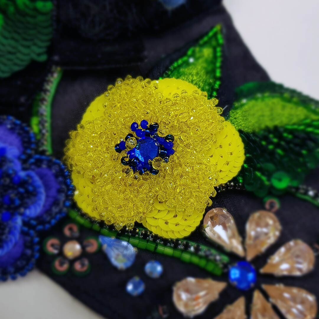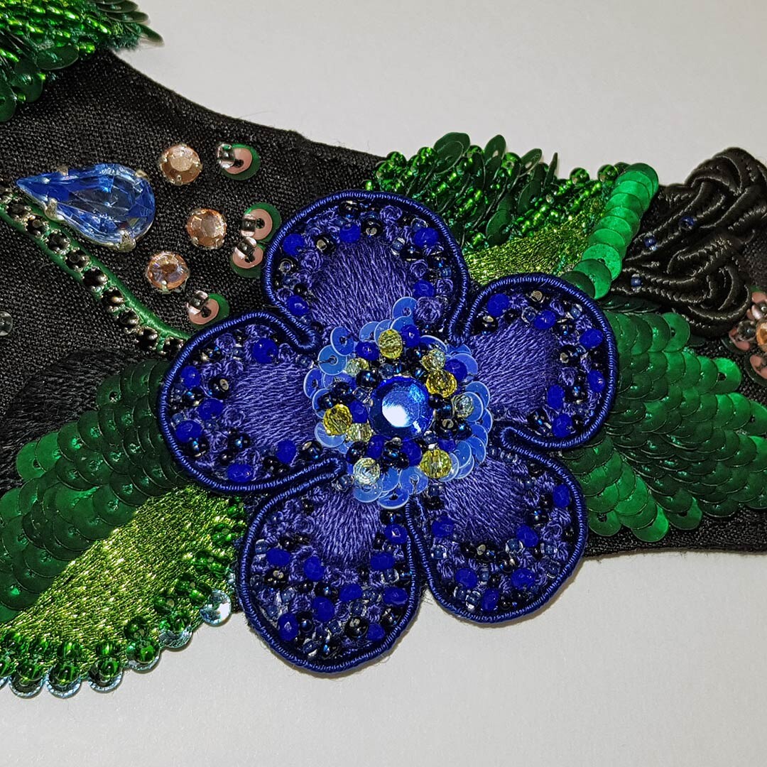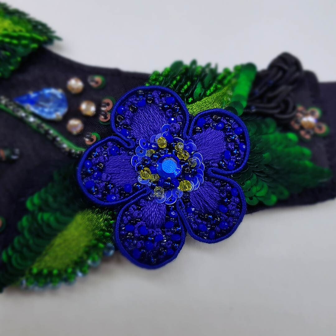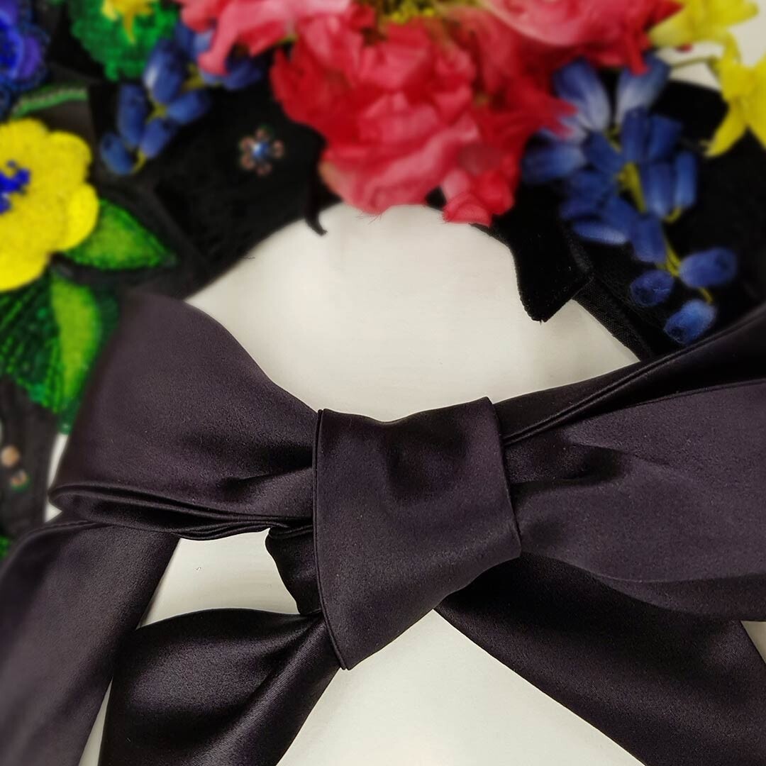 Воротничок-колье с шелковыми цветами и кутюрной вышивкой в стиле Вивьен Вествуд